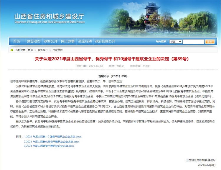 運城建工集團(tuán)被認(rèn)定為“山西省優(yōu)秀骨干建筑業(yè)企業(yè)”